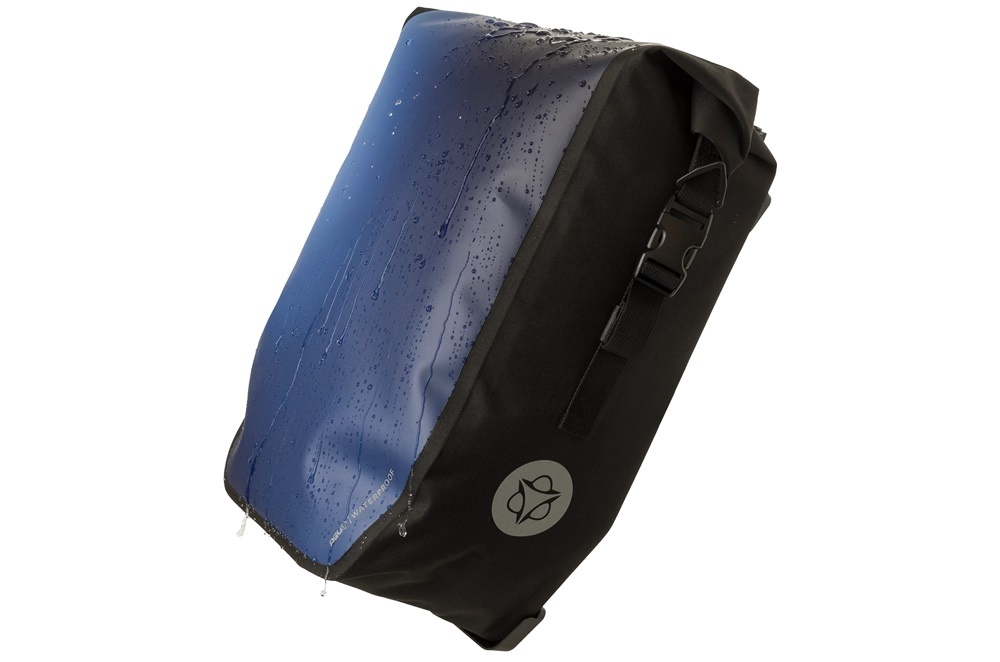 Dankzij innovatieve toepassingen is de fietstas volledig waterdicht, met een waterdichte binnenvoering en getapete naden. De waterbestendige rolltop-opening aan de bovenkant heeft een verhard element voor houvast bij het op- en afrollen.