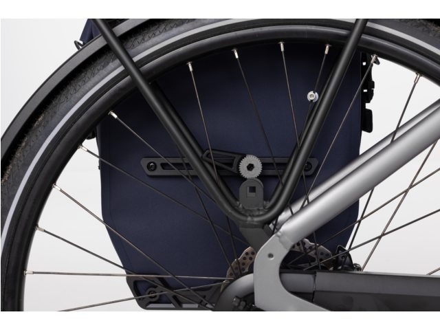 U bevestigt de tas eenvoudig aan de bagagedrager met de premium Click'nGo-haken van AGU. Deze 'railed hooks' kunnen in de breedte worden versteld, zodat deze altijd passen op uw bagagedrager. Wanneer u aan het handvat trekt dat gekoppeld is aan het haaksysteem, gaan de haken open zodat u de tas gemakkelijk van de fiets af kunt halen. Dankzij de AGU Click'nGo Swinglock blijft de tas op zijn plek en de AGU Click'nGo bottomguard beschermt de onderzijde van de tas. De fietstas is e-bike proof en past dus ook op de meeste elektrische fietsen.
