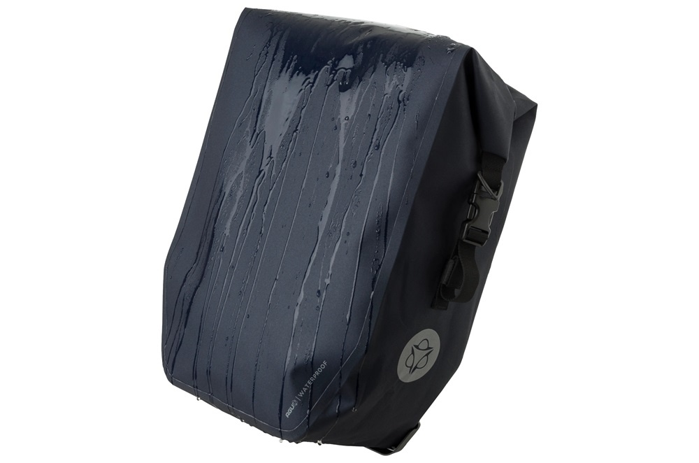Dankzij innovatieve toepassingen is de fietstas volledig waterdicht, met een waterdichte binnenvoering en getapete naden. De waterbestendige rolltop-opening aan de bovenkant heeft een verhard element voor houvast bij het op- en afrollen.
