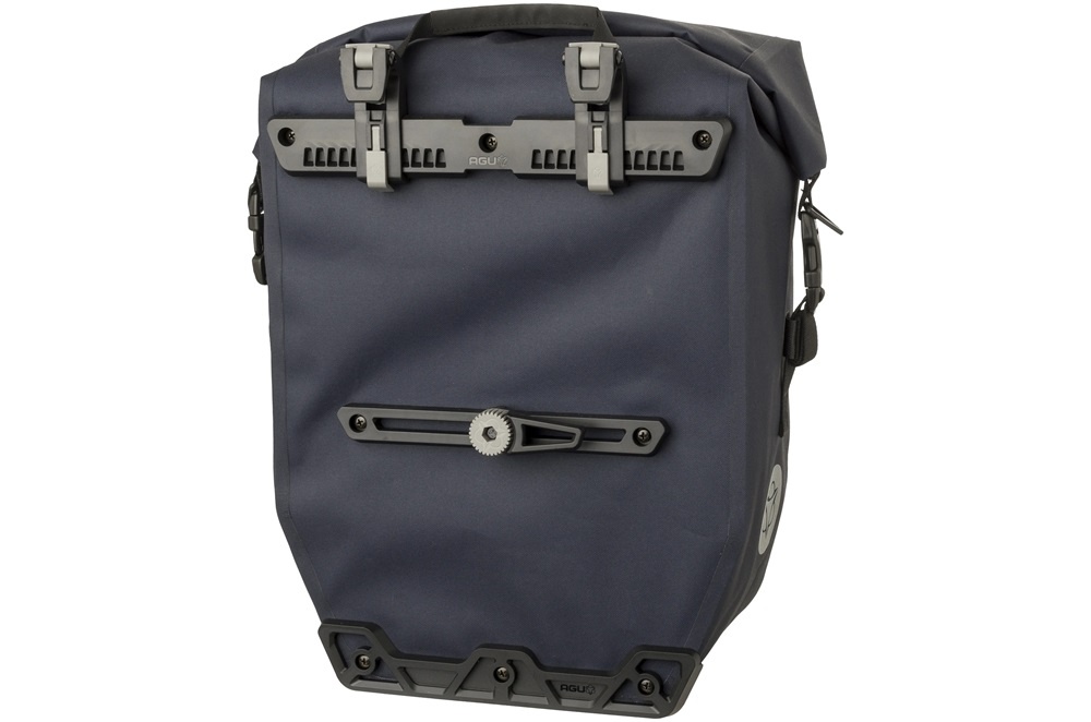 De AGU enkele fietstas Clean Shelter Large heeft een inhoud van 21 liter en is waterdicht. Deze robuuste donkerblauwe achtertas heeft een waterbestendige rolltopsluiting, een laptopcompartiment en een afneembare schouderriem. De fietstas wordt bevestigd met het Click'nGo-bevestigingssysteem. Een ideale fietstas voor wie dagelijks door weer en wind naar zijn werk fietst, maar ook heel geschikt voor een fietsvakantie!