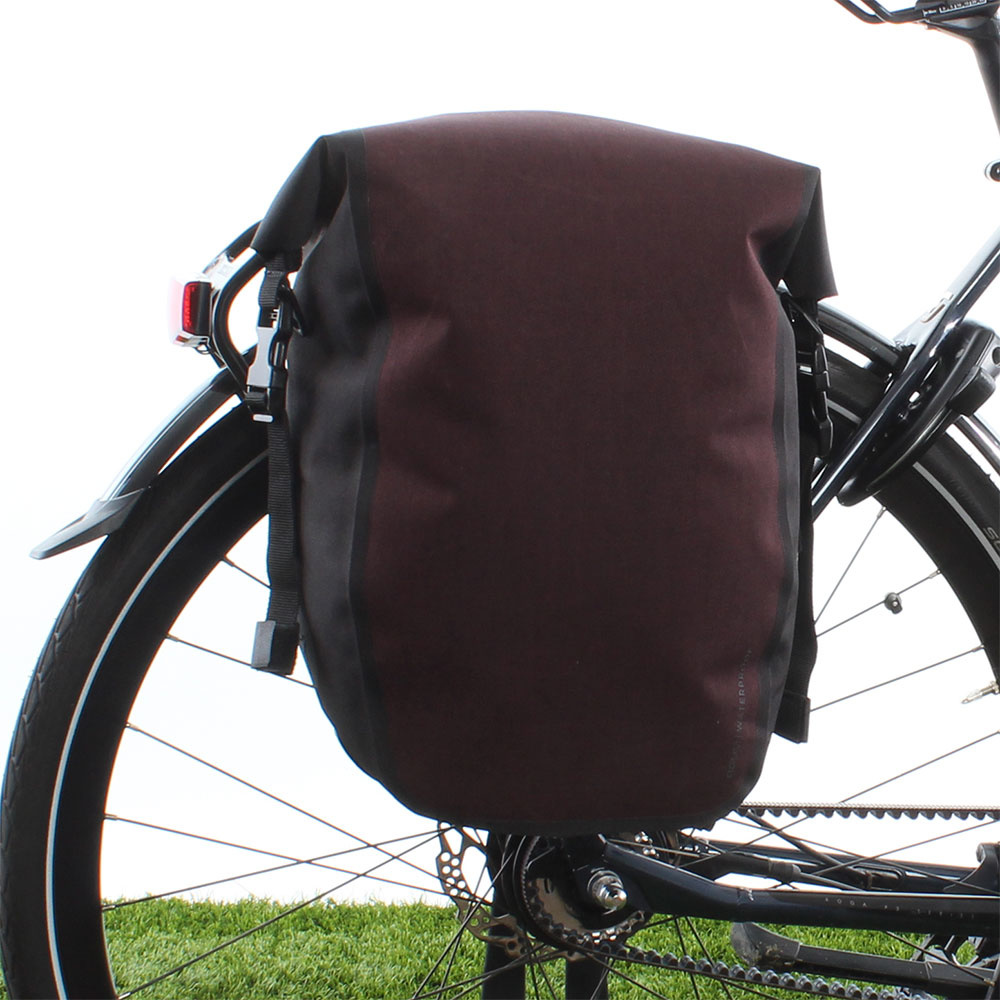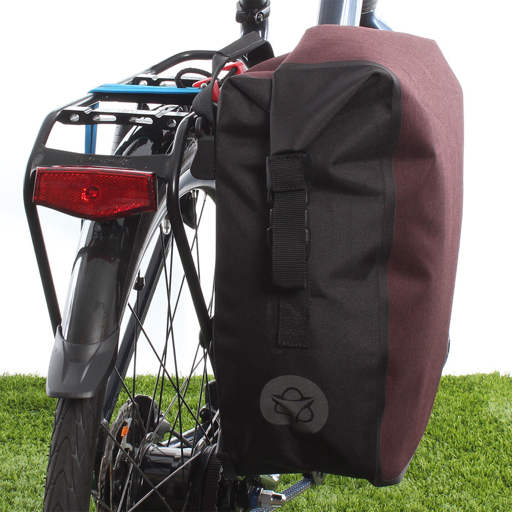 Dankzij innovatieve toepassingen is de fietstas volledig waterdicht, met een waterdichte binnenvoering en getapete naden. De waterbestendige rolltop-opening aan de bovenkant heeft een verhard element voor houvast bij het op- en afrollen.