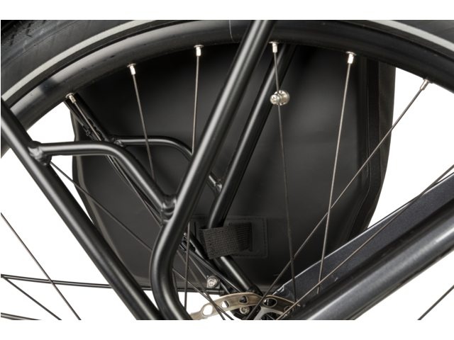 U bevestigt de tas eenvoudig aan de bagagedrager van uw fiets met de Click'nGo-haken van AGU. Deze 'railed hooks' kunnen in de breedte worden versteld, zodat deze altijd passen op uw bagagedrager. Wanneer u aan het handvat trekt dat gekoppeld is aan het haaksysteem, gaan de haken open zodat u de tas gemakkelijk van de fiets af kunt halen. De strook klittenband onderaan houdt de tas op z'n plek. Gaat u te voet verder? Dan kunt u de haakrail wegwerken achter een flap met rits.