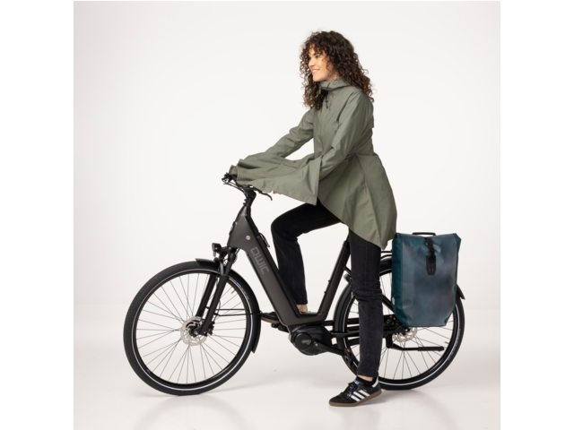 Dankzij innovatieve toepassingen is de fietstas volledig waterdicht, met een waterdichte binnenvoering en geplakte naden. De waterbestendige rolltop-opening aan de bovenkant heeft een verhard element voor houvast bij het op- en afrollen. De tas is gemaakt van 100% waterdicht gerecycled polyester. De speciale en duurzamere Dope Dye-techniek verbetert de kleurvastheid van de tas.