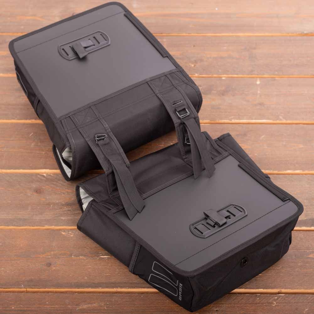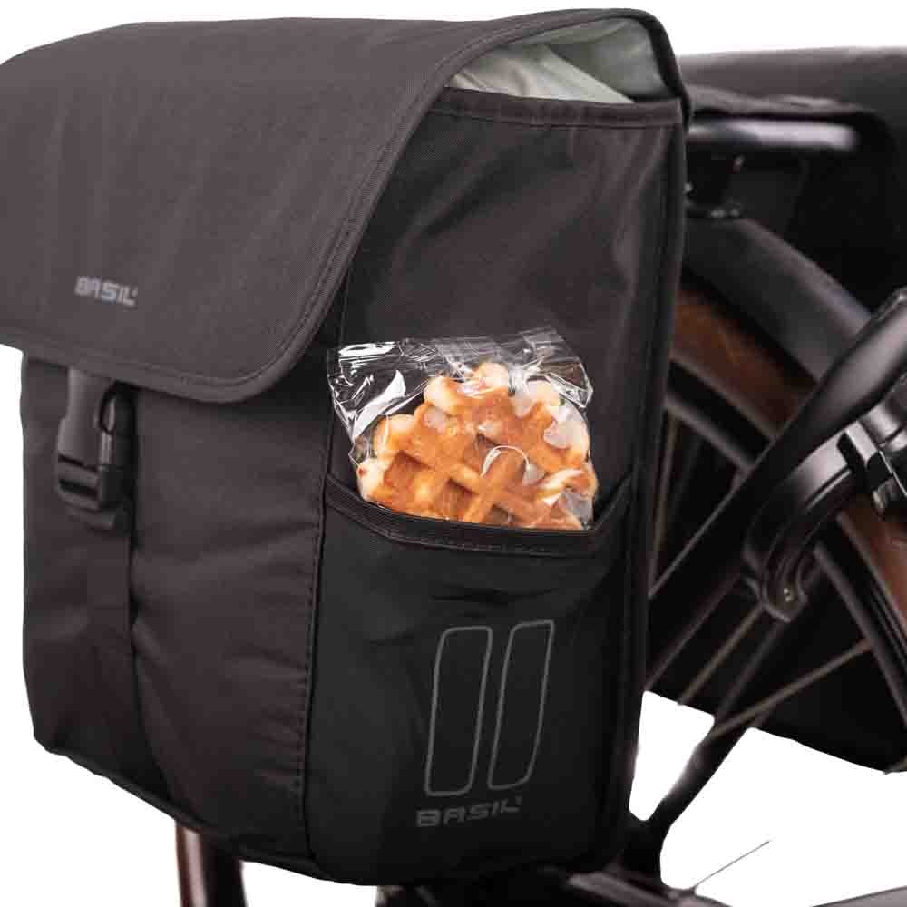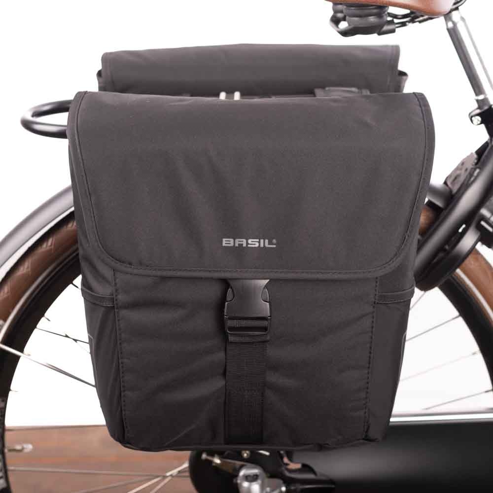 De dubbele fietstas Go van Basil heeft een ruime inhoud van 32 liter en is gemaakt van waterafstotend polyester. De tas is uitgevoerd in de kleur zwart en voorzien van reflecterende elementen.