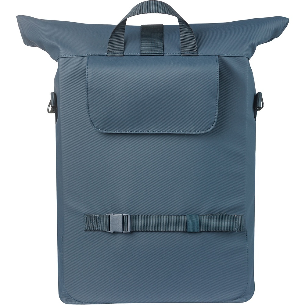 Deze donkerblauwe enkele fietstas en schoudertas Brooklyn van Basil heeft een moderne, strakke uitstraling. De tas heeft een inhoud van ca. 17 liter, een waterbestendige vouwsluiting, een laptopvak en een afneembare schouderband. De tas wordt bevestigd met het gebruiksvriendelijke MIK Hooks-systeem. Een ideale fietstas voor in de stad en voor woon-werkverkeer!