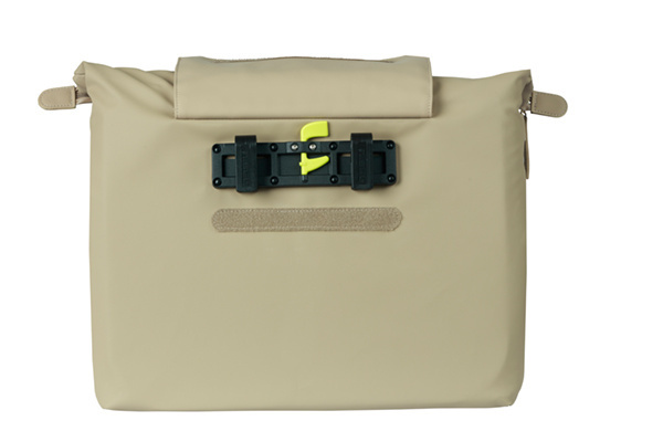 Dankzij het Hook-On-systeem van Basil is deze Manhattan met recht een pakaftas te noemen. De fietstas gaat vliegensvlug op en van de fiets. Even aanhaken, het klemmetje om, en klaar. En stapt u af - aangekomen bij werk, huis of opleiding - dan gaat het eraf nemen van de tas net zo snel. De haken zijn keurig netjes weg te werken achter een flap met klittenband.