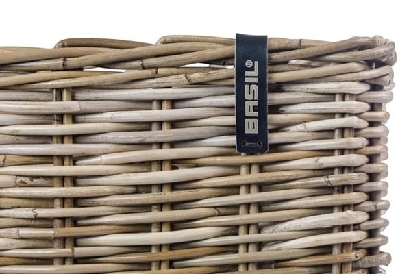Naast fietstassen en fietskratten levert Basil ook hippe en fraaie fietsmanden. Zoals deze ruime grijze fietsmand gemaakt van sterk rotan. De Dax in maat L heeft een inhoud van ongeveer 34 liter.