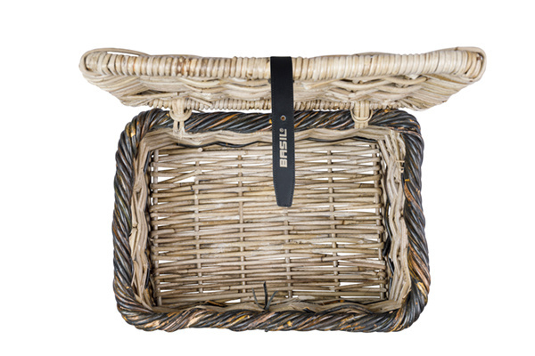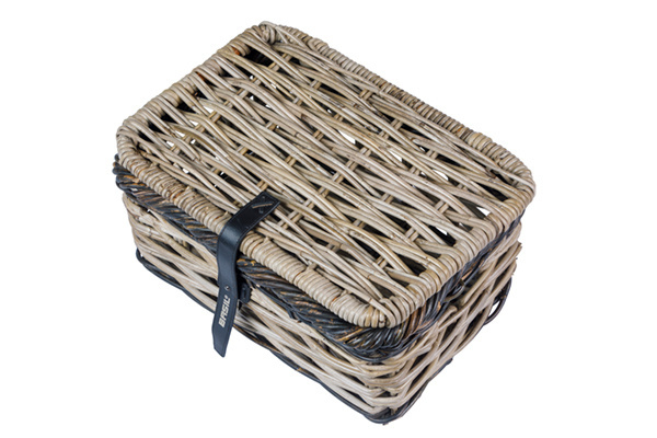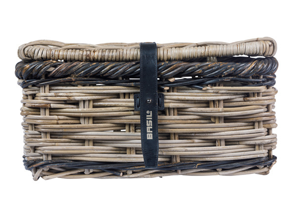 Naast fietstassen en fietskratten levert het merk Basil ook hippe en fraaie fietsmanden. Zoals deze compacte grijze fietsmand met zwarte rand, gemaakt van sterk rotan. De fietsmand Dijon met klep in maat S heeft een inhoud van ongeveer 14 liter. De mand heeft een handig deksel met lederen sluiting, om uw spullen veilig en beschermd te vervoeren. En het bijzondere vlechtwerk geeft de mand een luxe uitstraling.