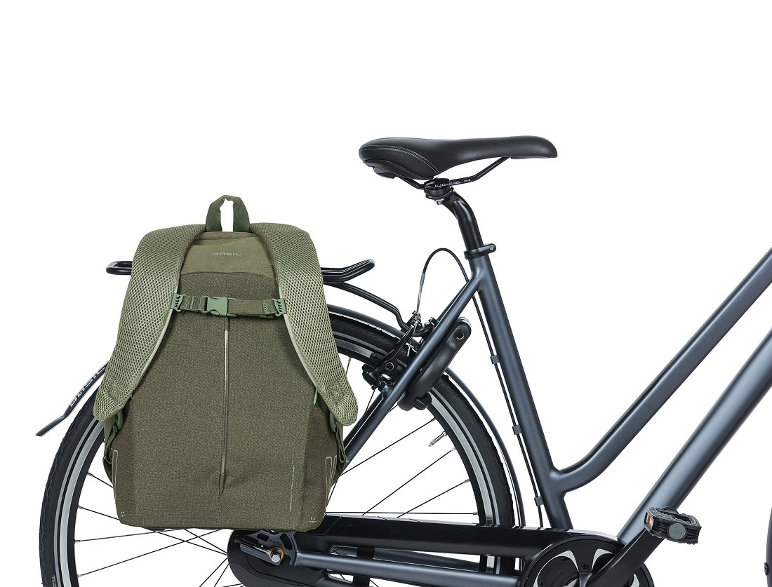 Heel handig: deze tas kunt u gebruiken als fietstas en als rugtas. Met het Hook-On systeem kunt u de tas gemakkelijk aan de fiets vastmaken. Even aanhaken, het klemmetje om, en klaar. U pakt de tas net zo gemakkelijk weer van de fiets af en draagt de tas comfortabel op uw rug door de gewatteerde achterzijde en schouderbanden. Het handige borstbandje zorgt ervoor dat de schouderbanden bij elkaar blijven. Ook wanneer de tas aan de bagagedrager zit, voor extra veiligheid.