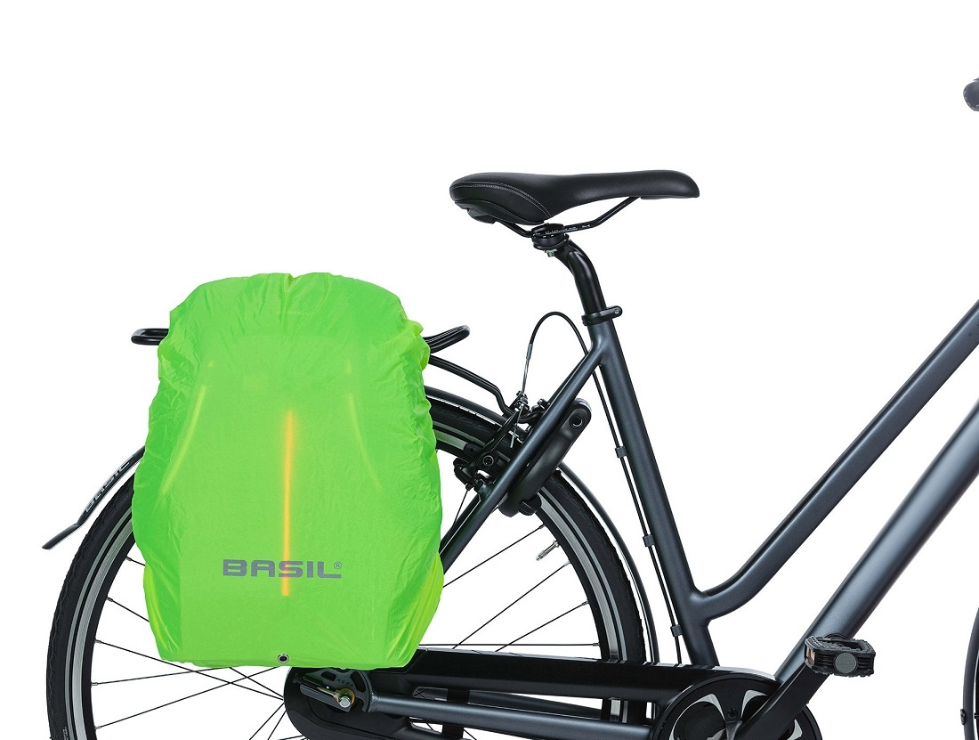 Deze innovatieve fietstas biedt nog meer extra's. Zo heeft hij een vaste regenhoes, die verscholen zit in een ritsvakje aan de achterkant van de tas. Als u de hoes vanuit hier om de tas doet, blijft deze aan het vak verbonden. Op deze manier raakt u de regenhoes nooit kwijt. De tas en regenhoes zijn beide voorzien van reflectie.