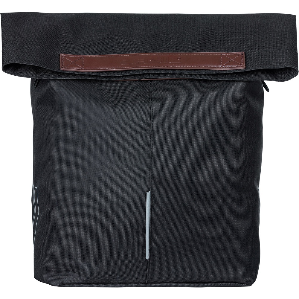 Deze zwarte enkele fietstas en schoudertas is zeer praktisch, en nog modieus en elegant ook. De City Shopper van Basil heeft donkerbruine vegan leren details, een inhoud van 14 tot 16 liter, een waterbestendige vouwsluiting en MIK Hooks-bevestiging.
