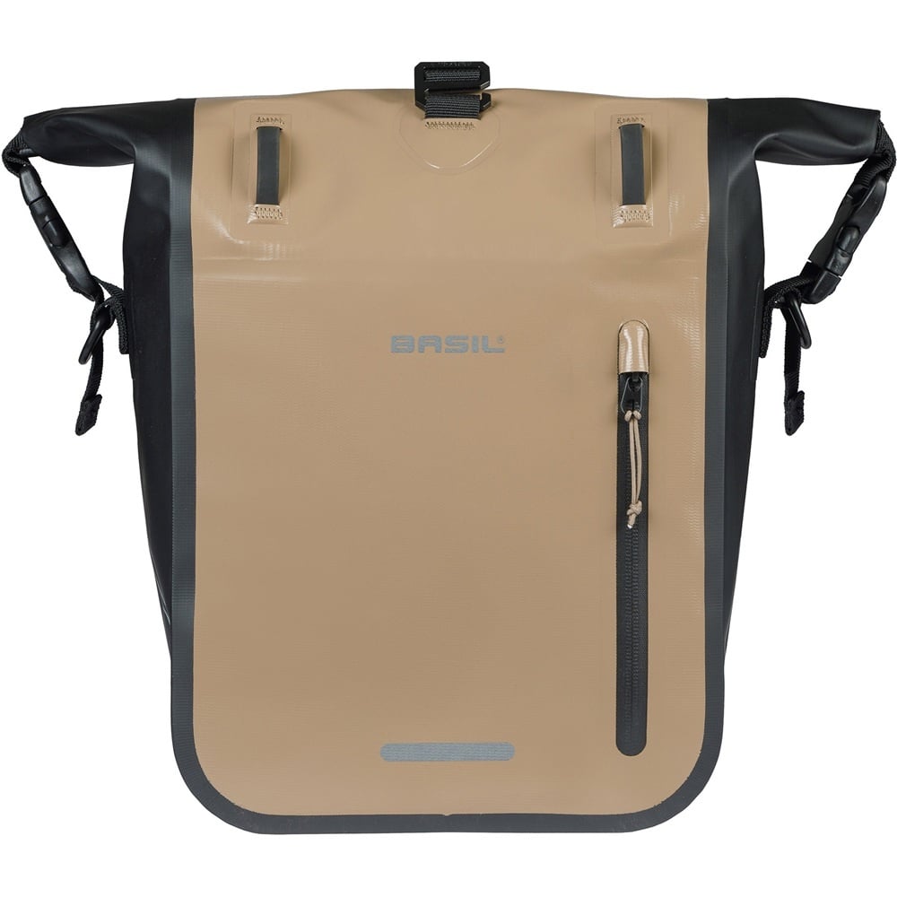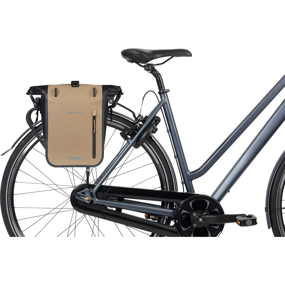 Basil Enkele Fietstas Rivo Tarpaulin M MIK Hooks 12-15L Zand/Zwart - Waterdicht