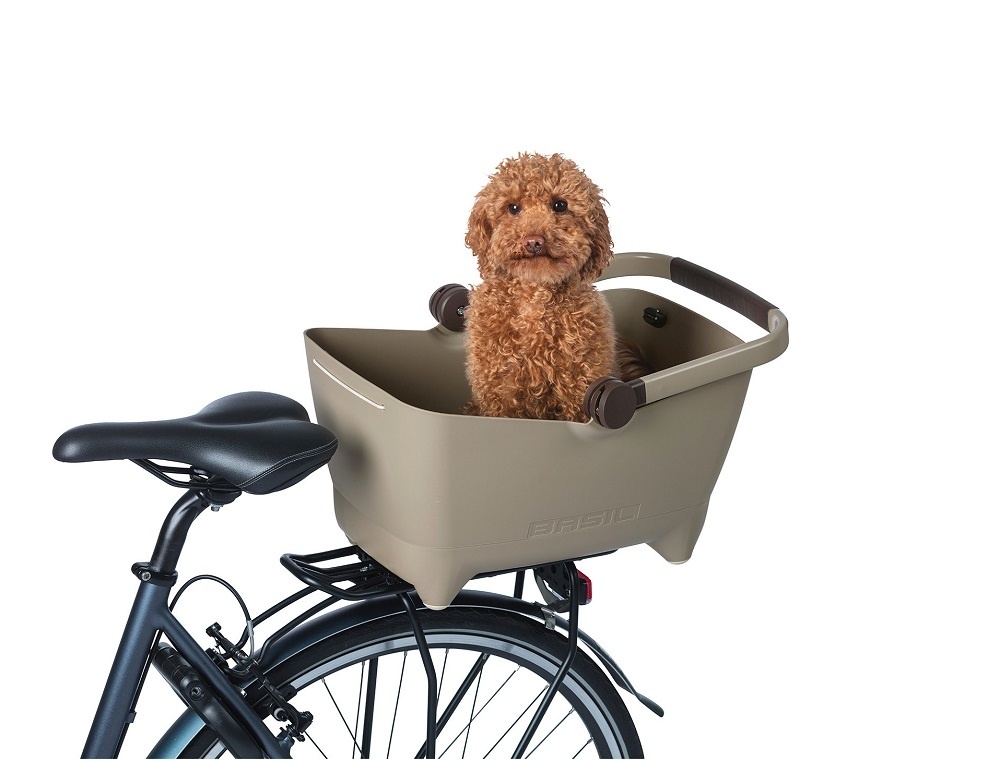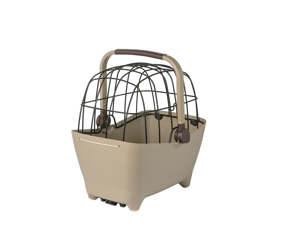 Deze hondenmand / kattenmand is bestemd voor achterop de fiets en past op bijna elke bagagedrager. De kleur 'biscotti brown' (lichtbruin) is nieuw. Het donkerbruine kussentje en andere donkerbruine details steken daar speels tegen af. Dankzij de voetjes aan de onderkant kunt u hondenfietsmand Buddy stabiel neerzetten.