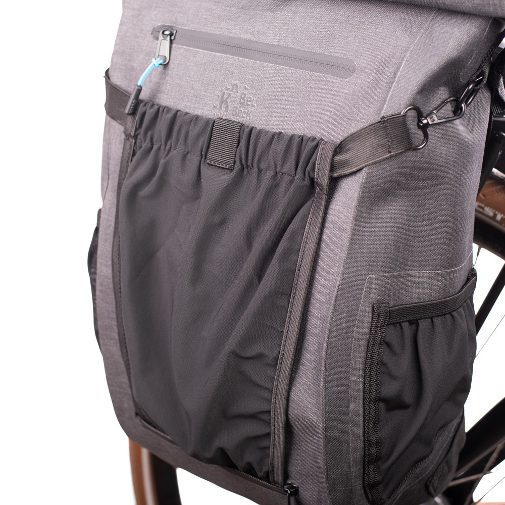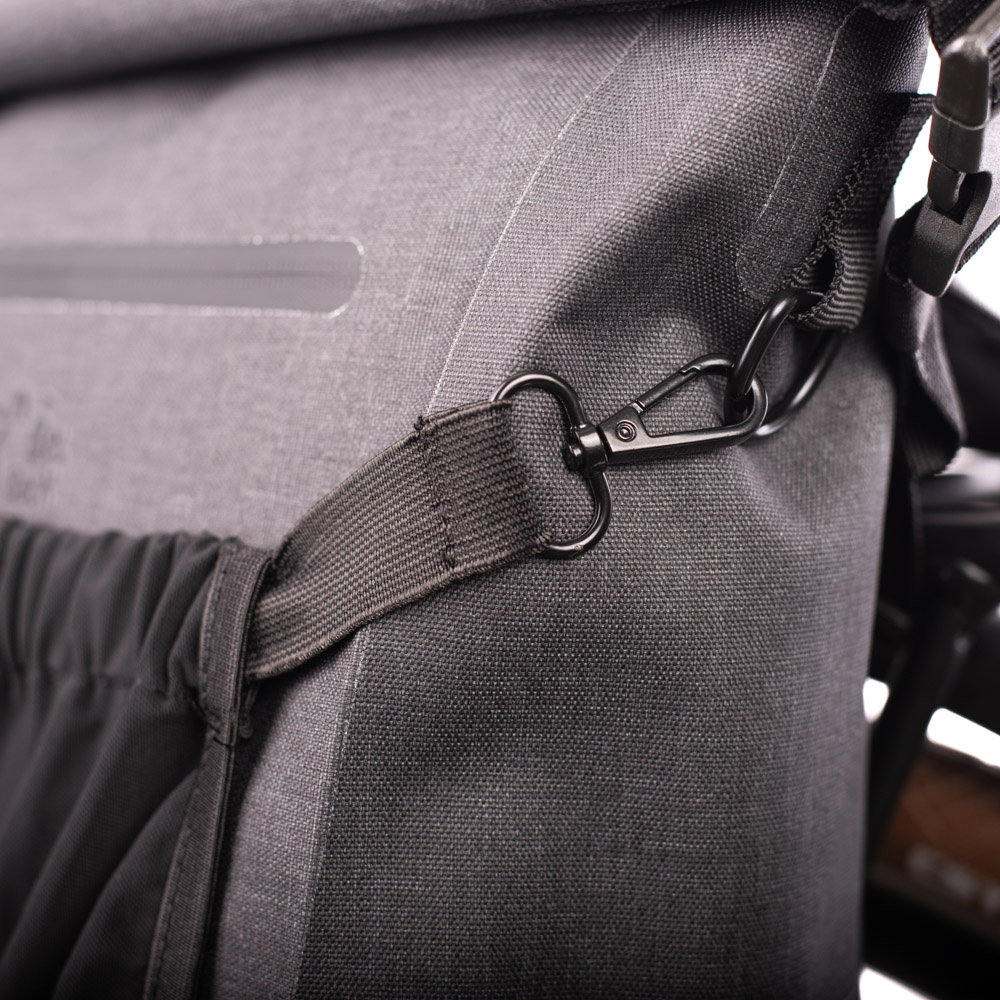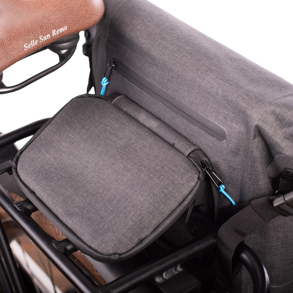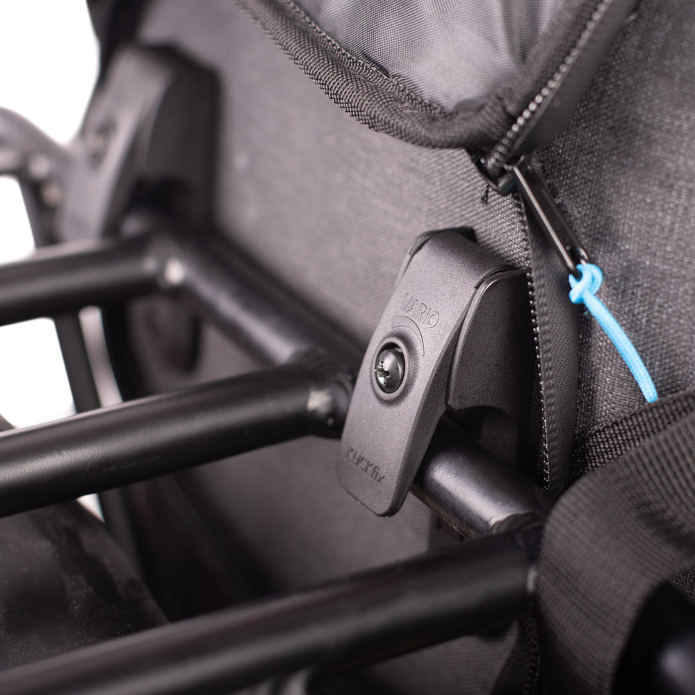 Deze enkele fietstas is eenvoudig aan de bagagedrager vast te maken met KLICKfix-klemhaken. Deze zijn vast en niet verstelbaar. De fietstas is ook geschikt voor gebruik op een e-bike, mits er voldoende ruimte is tussen de accu en de drager. Wanneer u te voet verder gaat, kunt u de klemhaken wegwerken achter een flap met een rits. U kunt de tas vervolgens comfortabel dragen als rugtas, dankzij de verstelbare en gevoerde schouderbanden en de verstelbare borstband. De schouderbanden zijn voorzien van ventilerend mesh. En wanneer u weer op de fiets stapt, kunt de schouderbanden netjes opbergen in een ritsvak in het rugpaneel.