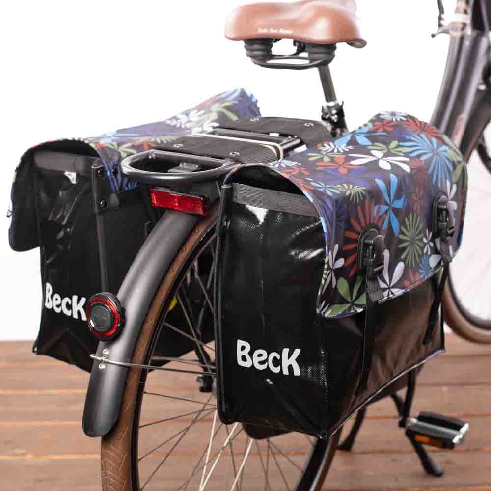 Kies voor deze vrolijk gekleurde fietstas voor een beetje geluksgevoel. De Beck Classic is dé klassieker onder de fietstassen. De tas is eenvoudig monteerbaar en geschikt voor gebruik met ledlampjes en snelbinders. Deze fietstas is tevens geschikt voor uw E-bike. De Classic is gemaakt van bisonyl en de flap is van canvas, hierdoor is de tas waterafstotend. De opvallende flap en de stoere sluitclips zorgen voor een mooi geheel. De inhoud van deze fietstas is 46 liter. De Beck Classic is voorzien van harde binnenplaten voor extra stevigheid. Het reflecterende logo zorgt voor een goede zichtbaarheid in het donker.