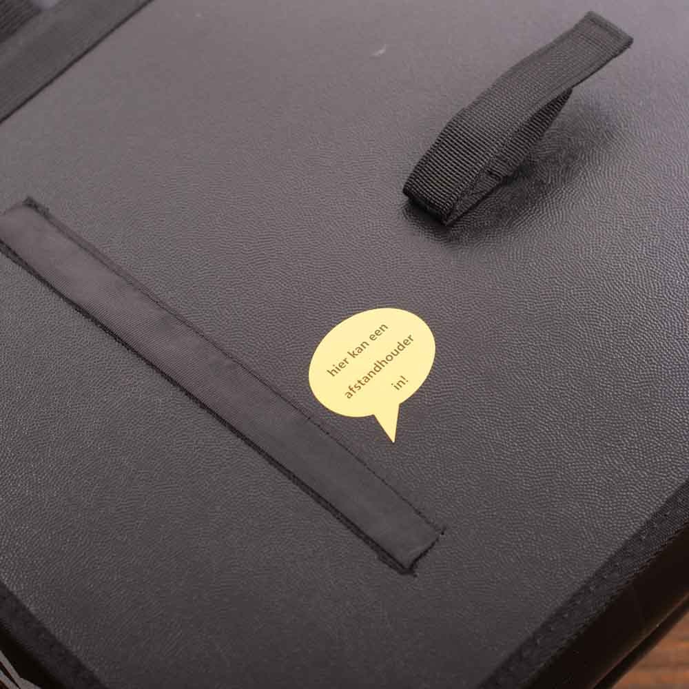 Voor extra veiligheid kunt u deze fietstas voorzien van de Beck afstandhouder. Hiermee voorkomt u dat de fietstas in uw spaken komt.
