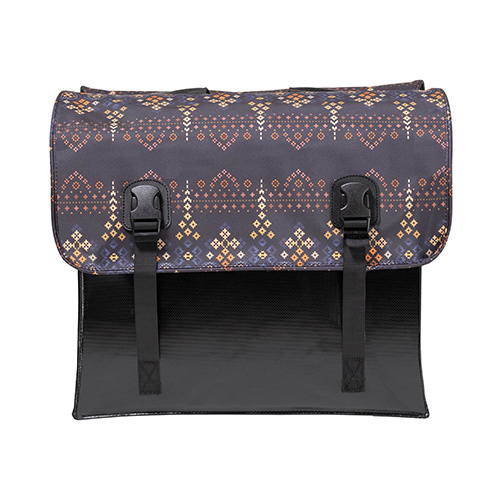 Deze zwarte Beck Classic-fietstas is voorzien van een stijlvolle print in paarsblauw, geel en oranje op de klep van de tas. De Beck Classic is dé klassieker onder de fietstassen. De fietstas is simpel te monteren en kan gebruikt worden met ledlampjes en snelbinders. Deze fietstas is ook geschikt voor e-bikes.