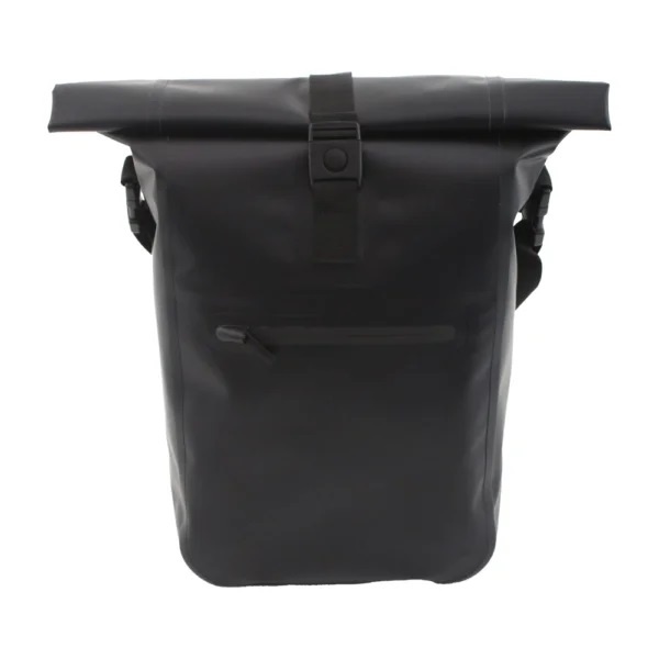 Deze matzwarte fietstas Base van Beck is een praktische enkele fietstas met een sportieve look en een inhoud van ruim 18 liter. De water- en vuilafstotende tas is gemaakt van stevig, weerbestendig TPU en voorzien van een rolsluiting, een laptopcompartiment, een schouderband en reflecterende logo's.