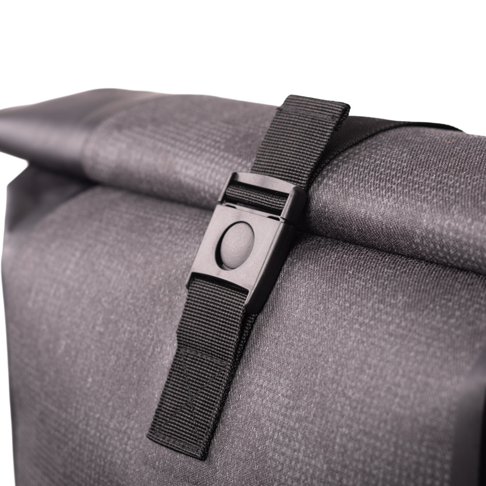 Deze matzwarte fietstas Base van Beck is een praktische enkele fietstas met een sportieve look en een inhoud van 18 liter. De water- en vuilafstotende tas is voorzien van een rolsluiting, een laptopcompartiment, een schouderband en reflecterende logo's.