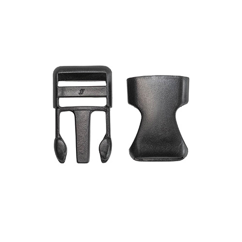 Een zwarte kunststof klikgesp voor de fietstas Natural van het merk Beck, ter vervanging van een kapotte klikgesp.