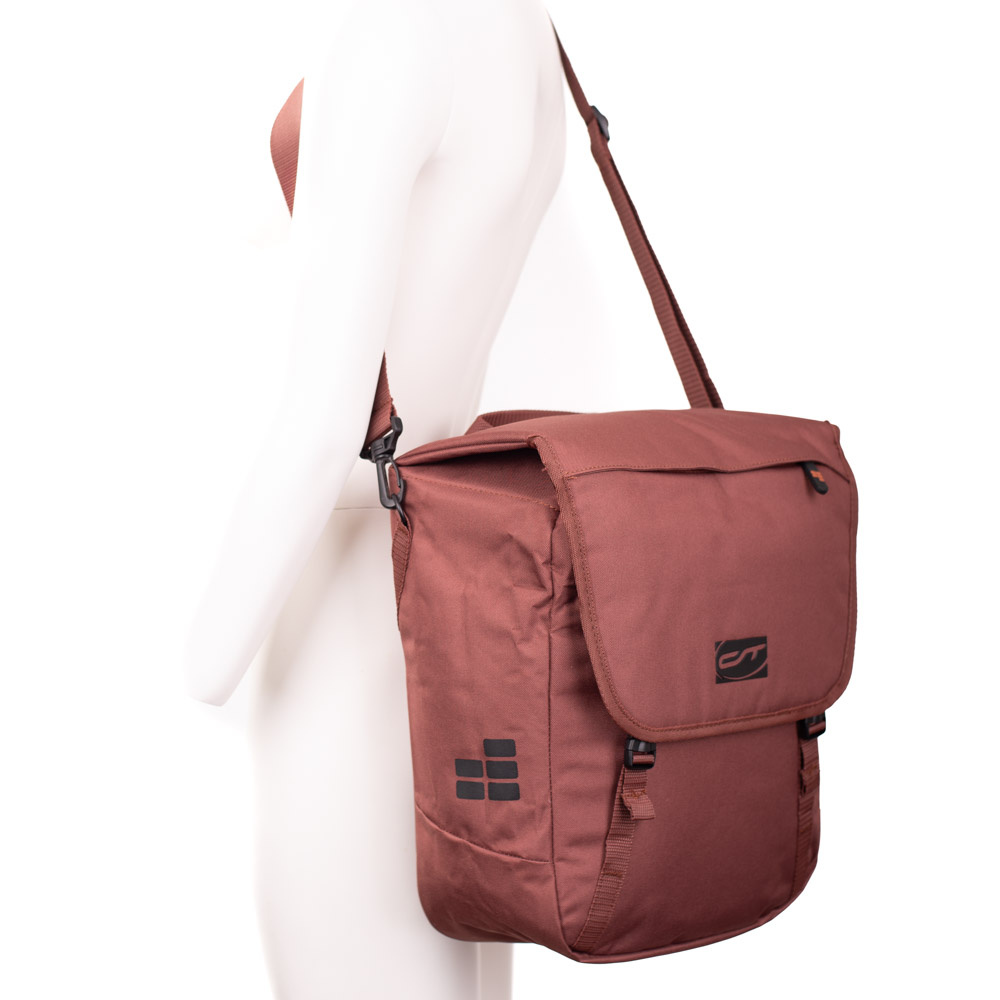 Deze Via Tour is een enkele fietstas, pakaftas en schoudertas in de uitvoering 'Rusty Red'. De stijlvolle fietstas van CONTEC is gemaakt van waterafstotend polyester, biedt 16 liter ruimte voor uw spullen en is gemakkelijk op de fiets te plaatsen.