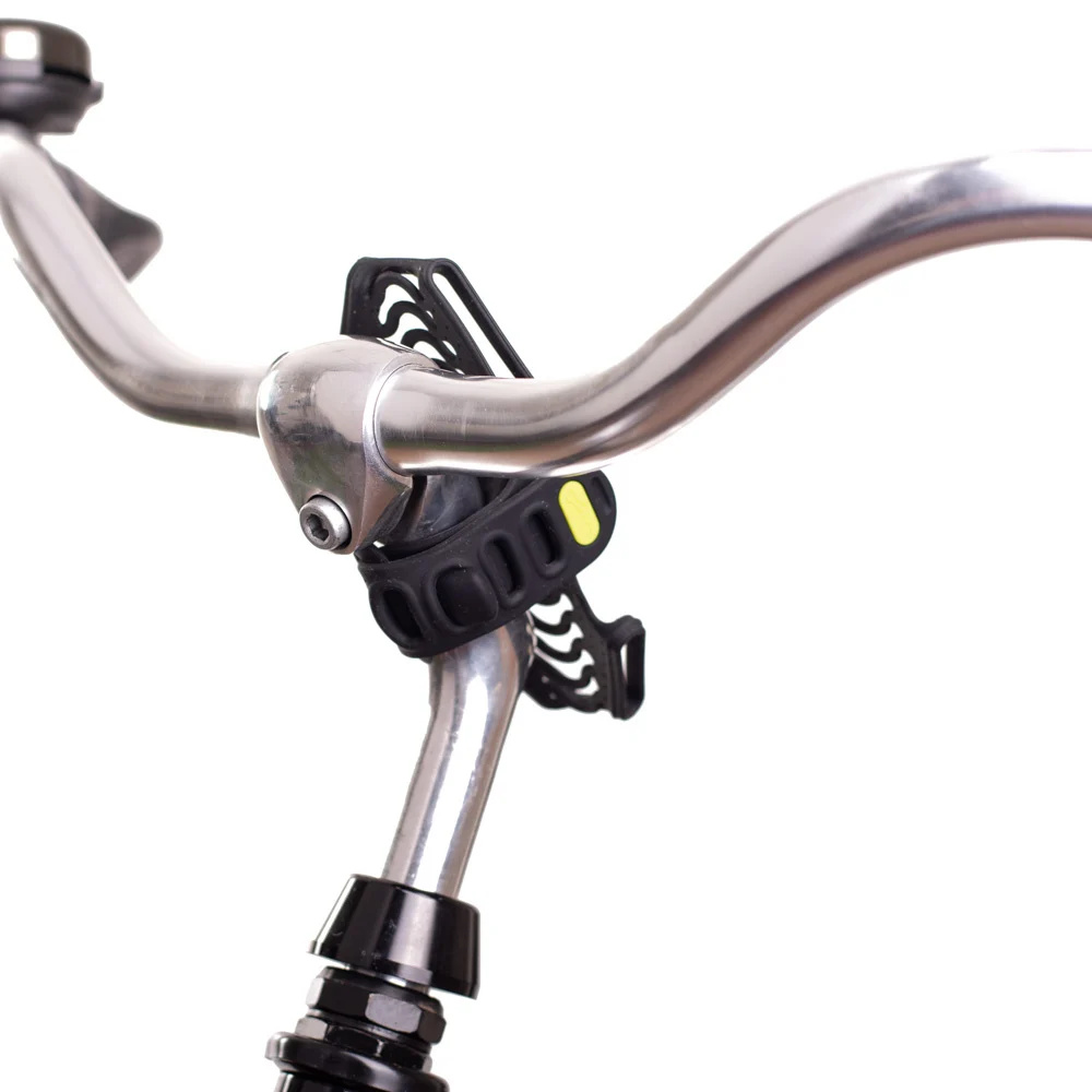 De telefoonhouder is gemakkelijk aan het stuur of de stuurpen van de fiets te bevestigen met een band. Doordat de band verstelbaar is, past de houder op sturen met verschillende diameters.
