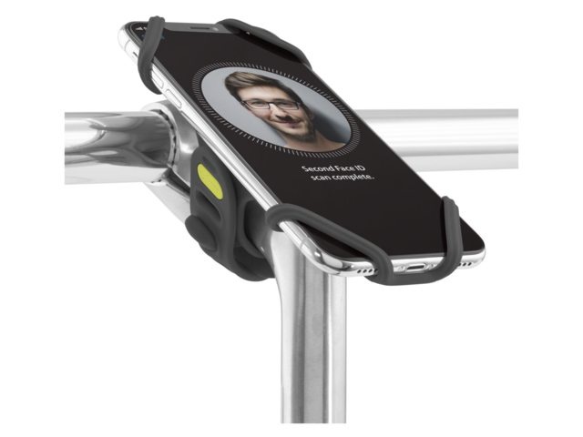De compacte telefoonhouder heeft een aerodynamisch design en is geschikt voor telefoons van 4 tot 6,5 inch (10 tot 17 cm). Het elastische anti-slip siliconen materiaal van de houder absorbeert schokken en voorkomt krassen op de telefoon. Bovendien is het materiaal weerbestendig.
