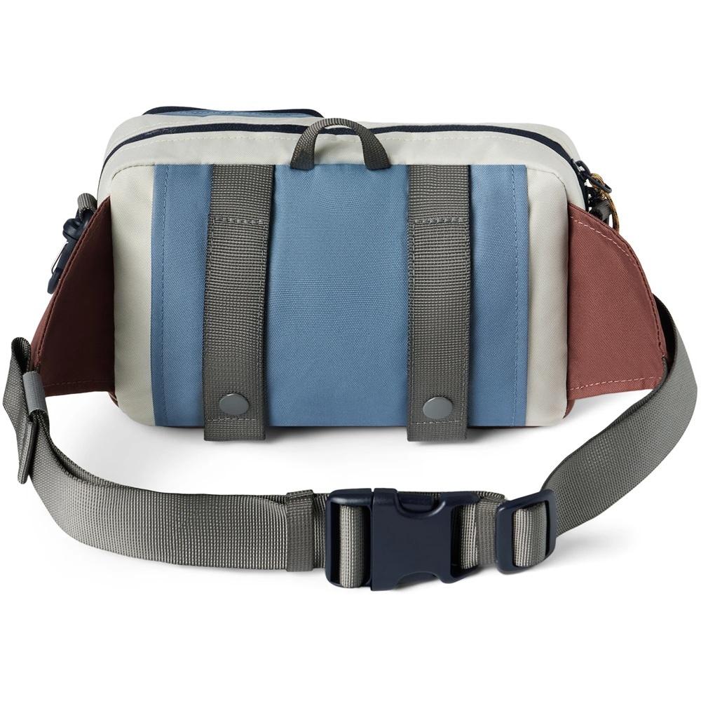 De crossbody schouderband met karabijnhaak is verstelbaar en afneembaar. Ook de brede heupband is verstelbaar; deze sluit met een grote klikgesp. Wanneer de tas gedragen wordt als schoudertas, kan de heupband netjes worden weggewerkt in het steekvak op de achterkant van de tas. En met de twee banden met drukknoop aan de achterkant kan de Jagger Hip Pack worden bevestigd aan bijvoorbeeld een andere tas uit de J-Connection-lijn van Dakine zoals de June Backpack, aan een riem of aan het stuur van een fiets.