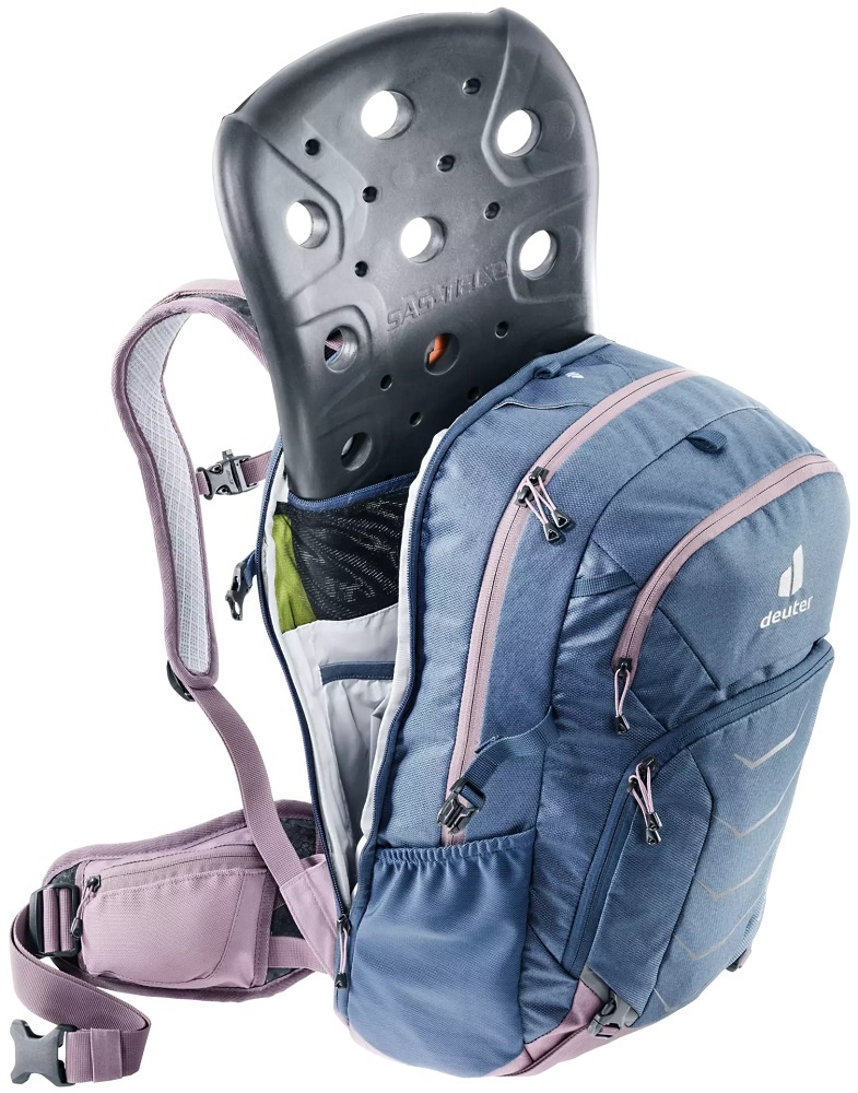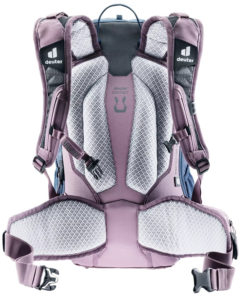 De Attack 18 SL uit de Attack-serie van Deuter is een fietsrugzak voor dames gemaakt van duurzame materialen. De rugzak in de kleuren blauw en paars is voorzien van het Contact-rugsysteem en een multishock rugprotector die zorgt voor optimale bescherming bij valpartijen. Daarnaast beschikt de rugzak over veel handige opbergvakken, zoals een smartphonevak, een organiser, een elastisch zijvak en een helmhouder. Een heel complete rugtas voor intensieve en avontuurlijke (downhill) mountainbiketochten, bijvoorbeeld in de bergen.