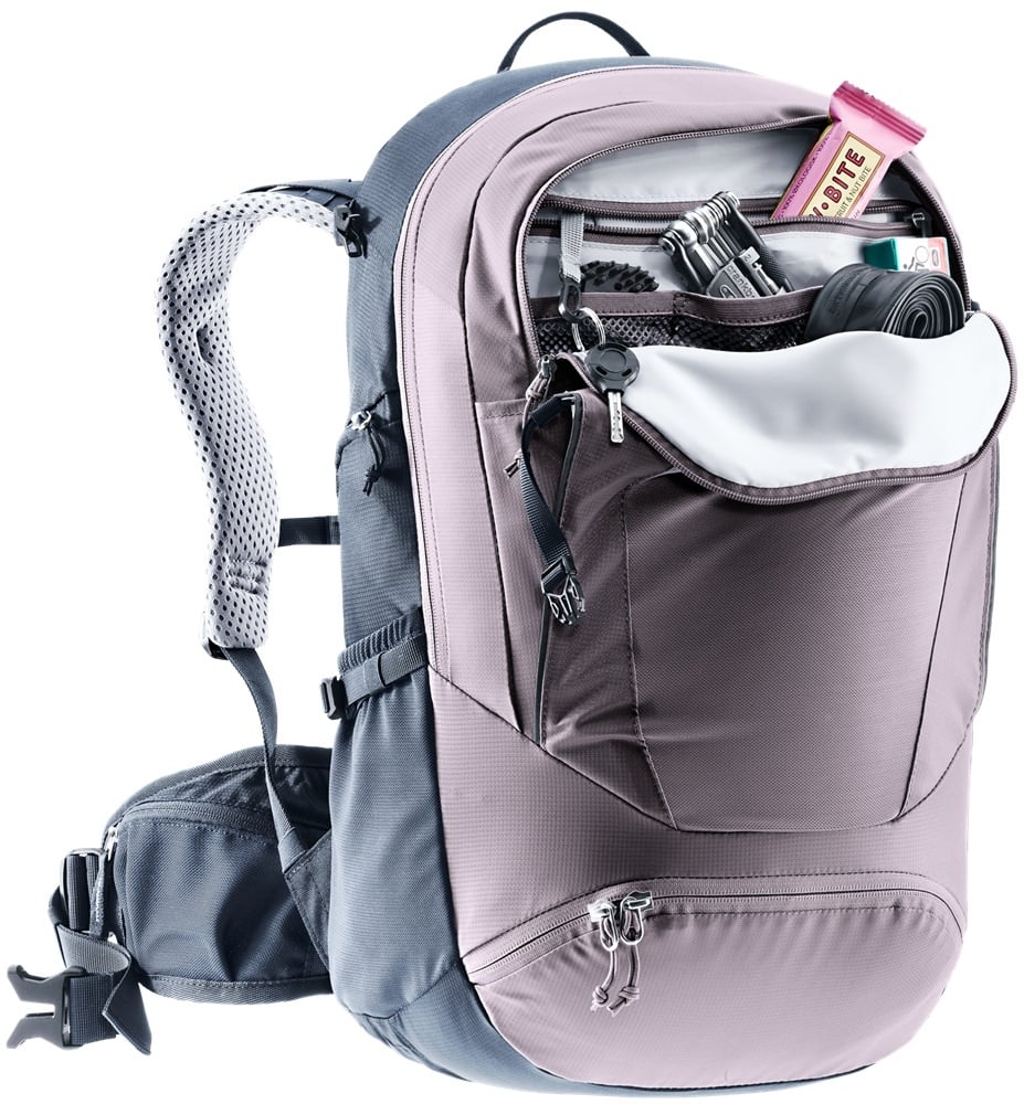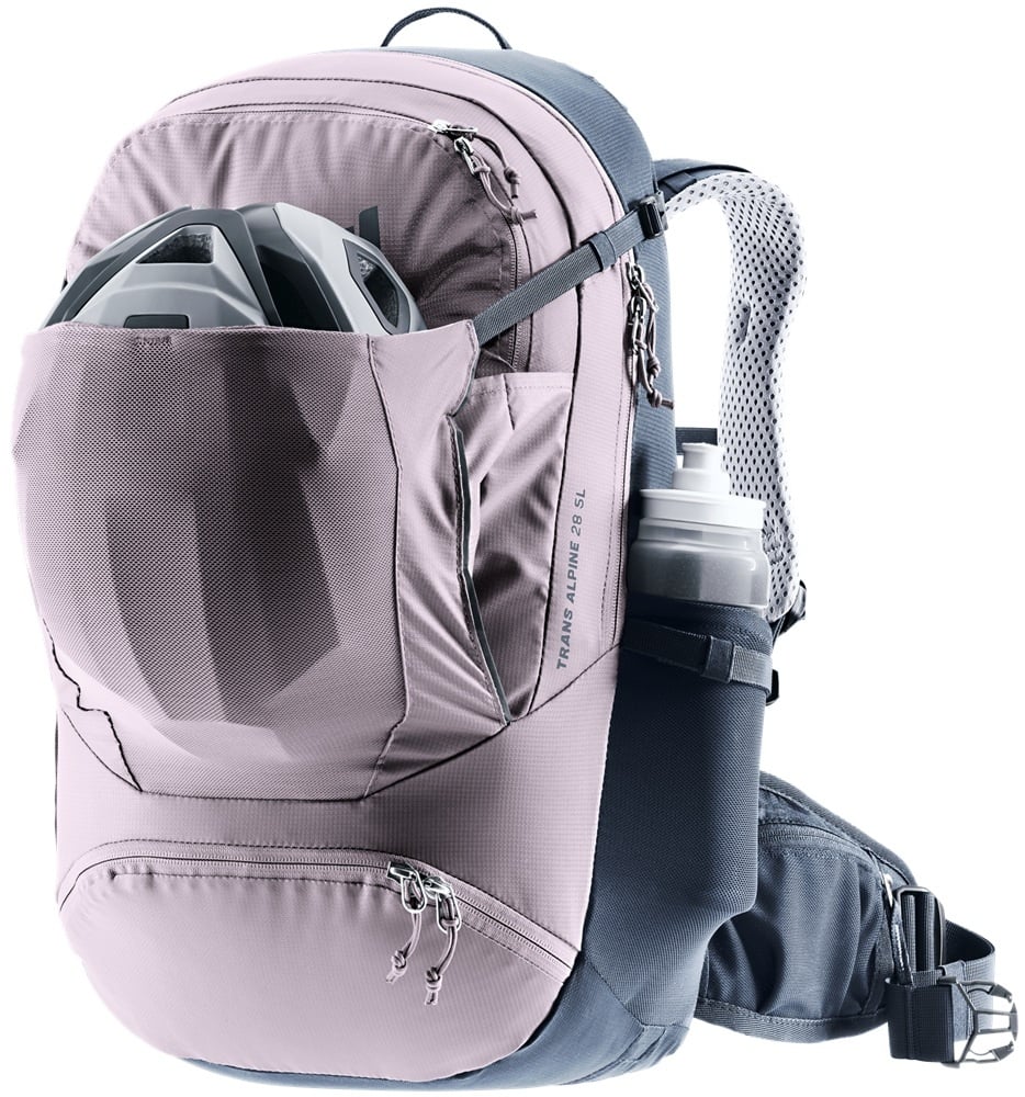 De Trans Alpine 28 SL uit de Trans Alpine-serie van Deuter is een fietsrugzak voor dames gemaakt van duurzame materialen. De rugzak, in de kleuren lila en donkerblauw, is voorzien van het innovatieve Airstripes-rugsysteem dat zorgt voor optimale ventilatie. Daarnaast beschikt de rugzak over veel handige opbergvakken, zoals een smartphonevak, elastische zijvakken en een brilhouder. Een heel complete rugtas voor intensieve tour- en mountainbiketochten, bijvoorbeeld in de bergen.