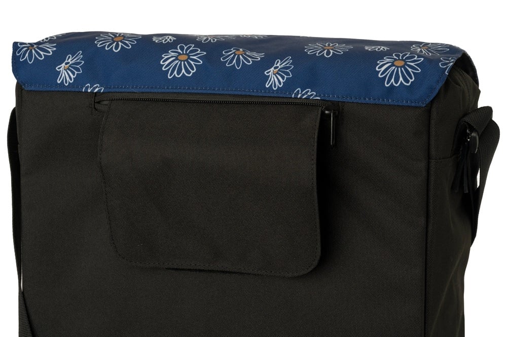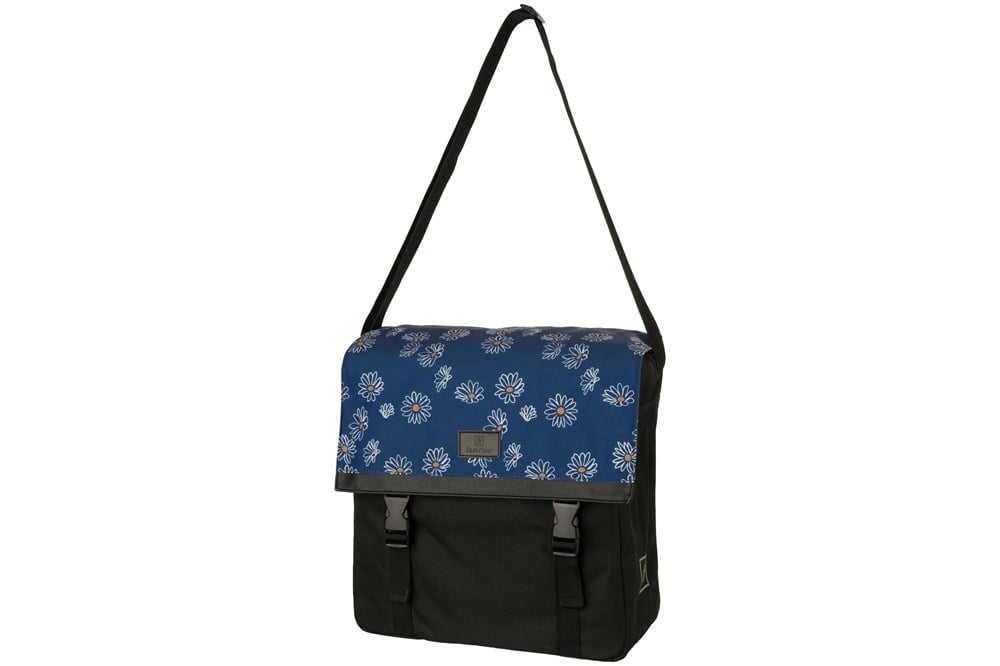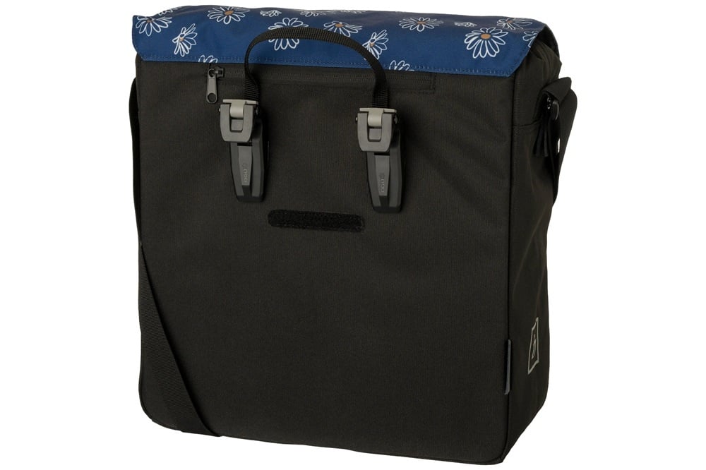 Deze zwarte enkele fietstas van FastRider heeft een trendy uitstraling. De blauwe klep heeft een vrolijke bloemenprint in wit en geel, en de zwarte lederen bies voegt een vleugje luxe toe. De tas is stevig, heeft een inhoud van 17 liter, is waterafstotend en voorzien van reflectie.
