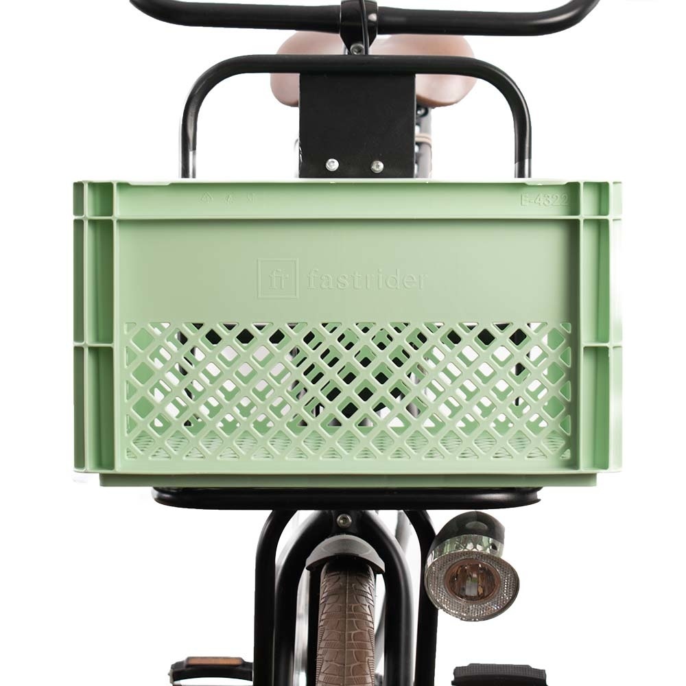 Fastrider is al decennia verweven in de branche van fietskratten, maar ook fietstassen, fietsmanden en regenkleding. Hun slogan 'Praktisch op iedere fiets' heeft betrekking op praktische producten die ook op praktisch elke fiets passen. Zo heeft dit merk voor elke fiets en elk karakter dat daarop plaatsneemt, een bijpassend gekleurde krat. Bijvoorbeeld dus deze zeer prijsvriendelijke variant in de kleur mint, die u met de meegeleverde tie-wraps of met een speciale fietskrat-bevestigingsmethode als deze makkelijk en stevig op de voordrager, het bakkersrek of op de bagagedrager plaatst.