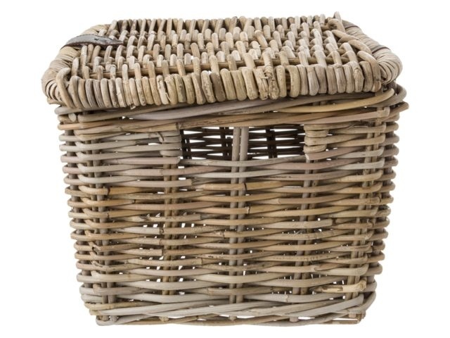 Deze handgemaakte rotan kratmand Sera met deksel in maat M heeft een natuurlijke uitstraling. De robuuste rechthoekige fietsmand van het merk Fastrider heeft praktische handgrepen aan de zijkanten en is gemakkelijk te bevestigen op de voordrager van een fiets.