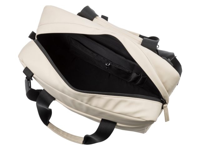 De tas is gemaakt van mat gecoat polyester. Het ruime hoofdvak sluit met een ritssluiting. Binnenin zit een gepolsterd vak voor het opbergen van een laptop of tablet t/m 14 inch. Ook vindt u hier een ritsvakje en twee penhouders. Op de voorkant van de tas zitten nog twee opbergvakken die sluiten met klittenband. De tas heeft een verstevigde achterkant en bodem, en de zijkanten van de tas zijn voorzien van een reflecterend Fastrider-logo.