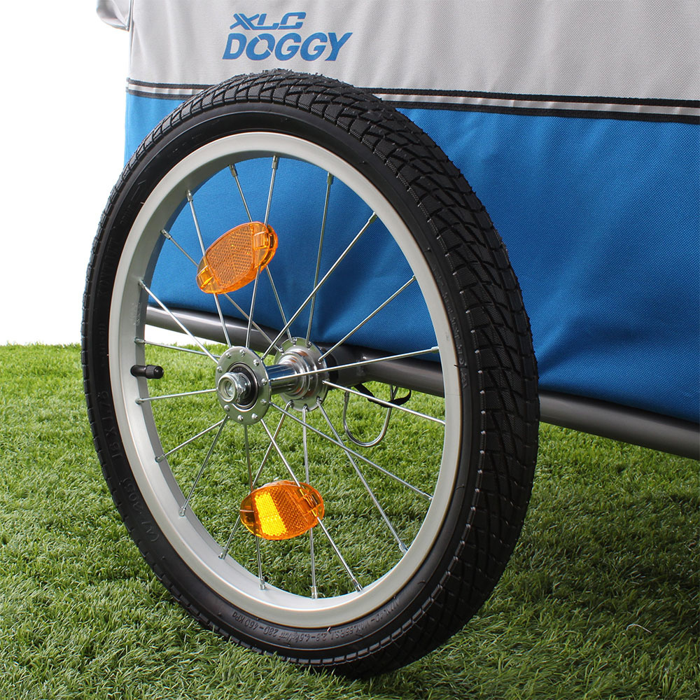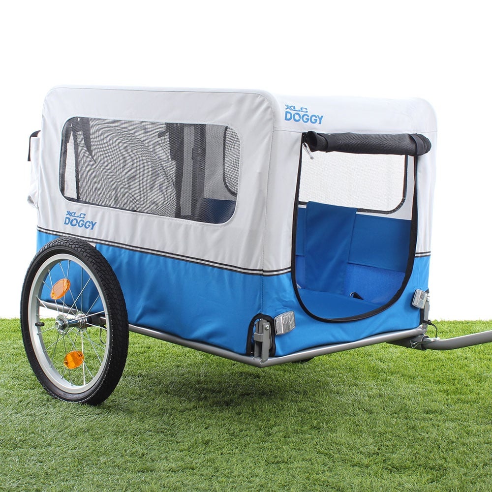 Deze hondenfietskar van XLC maakt het mogelijk om voortaan sámen met uw trouwe viervoeter te genieten van mooie fietstochten. De kar is opvouwbaar en licht van gewicht. U bevestigt deze hondenkar aan de achterkant van uw fiets en is ideaal voor het vervoeren van de wat grotere hond. De kar is uitgevoerd in de kleuren blauw en zilver en is geschikt tot een gewicht van 30 kilo.