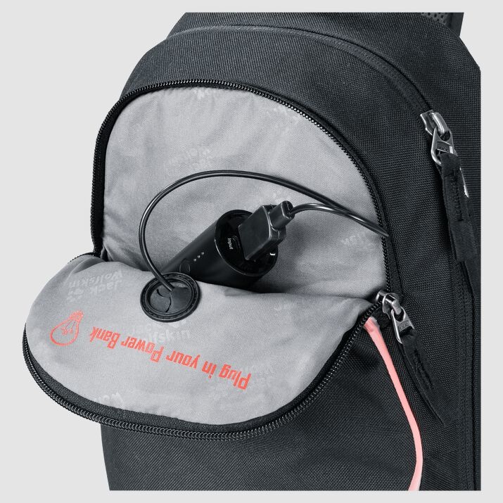 De Sparksling is voorzien van LED-verlichting van OSRAM voor extra zichtbaarheid onderweg. Om de rugzak te laten oplichten, sluit uw gewoon een standaard powerbank aan (niet inbegrepen). Hier is een speciaal vakje voor ingericht.
