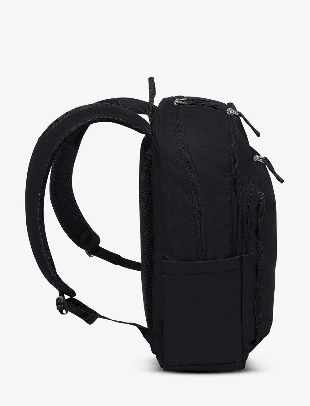 Het achterste vak van deze rugtas biedt ruimte voor boeken en paperassen van A4-formaat. Achterin dit vak zitten een gevoerd laptopvak en twee steekvakken. Ook het grote ritsvak daarvoor biedt veel opbergruimte voor allerlei spullen. En dan is er nog een wat kleiner ritsvak op de voorkant van de tas. In het rekbare zijvak kan een drinkfles worden opgeborgen, en op de voorkant zitten bevestigingslussen. De stevige tas heeft een gevoerde bodem.