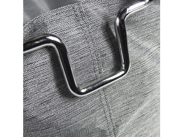 De bovenrand is verstevigd met een verchroomde stalen beugel. De mand is licht van gewicht en kan na gebruik worden opgevouwen. Is de mand vies geworden? Dan kunt u 'm los ritsen van de beugel en wassen.
