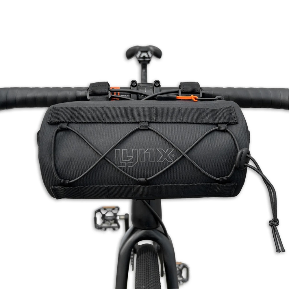 Deze compacte zwarte stuurtas Wildtrack van het merk Lynx is gemaakt van waterproof materiaal en heeft een inhoud van ca. 3 liter. De lichtgewicht tas wordt aan het stuur bevestigd met klittenband en is ontworpen voor bikepacking met een mountainbike, gravelbike of racefiets.