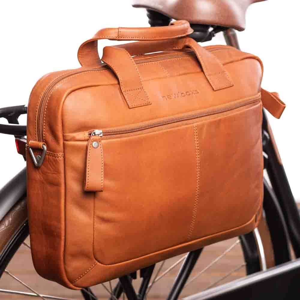 Deze bruine luxe lederen kantoortas Luko van New Looxs heeft een inhoud van 10 liter. Het is een exclusieve tas met een stoer en stijlvol uiterlijk. Een mooie en praktische fietstas en kantoortas met een laptopvak, tablethoes en veel opbergvakken, waar u lang plezier van zult hebben.