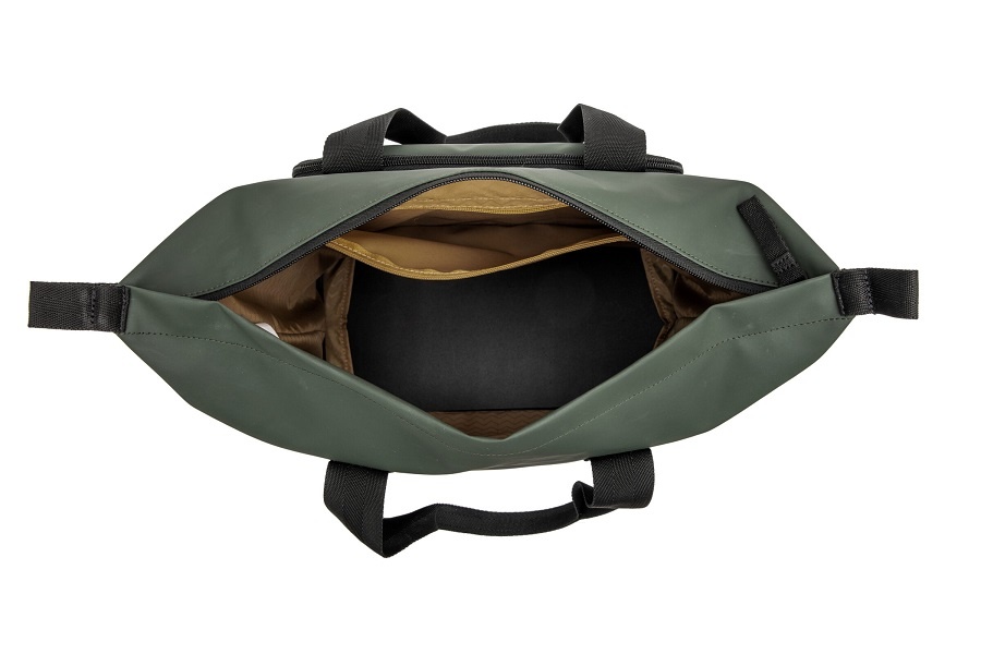 De tas is gemaakt van waterafstotend polyester, waardoor deze bestand is tegen een kleine regenbui. Maar vanwege de ritssluiting bovenop is de tas niet 100% waterdicht. Om de tas volledig waterdicht te maken, kunt u de New Looxs-regenhoes voor enkele fietstassen erbij bestellen.