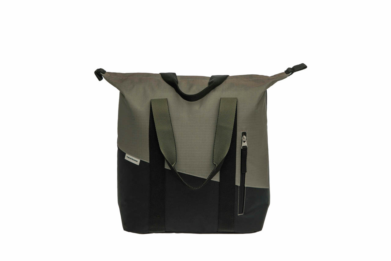 Deze trendy enkele fietstas en pakaftas Oslo Kota van het merk New Looxs heeft een inhoud van 24 liter. De tas is uitgevoerd in de kleurcombinatie zwart en donkergroen. De Kota is een handige shopper, met een ruim hoofdvak, ritsvakken, afdekbare haken en reflectie.