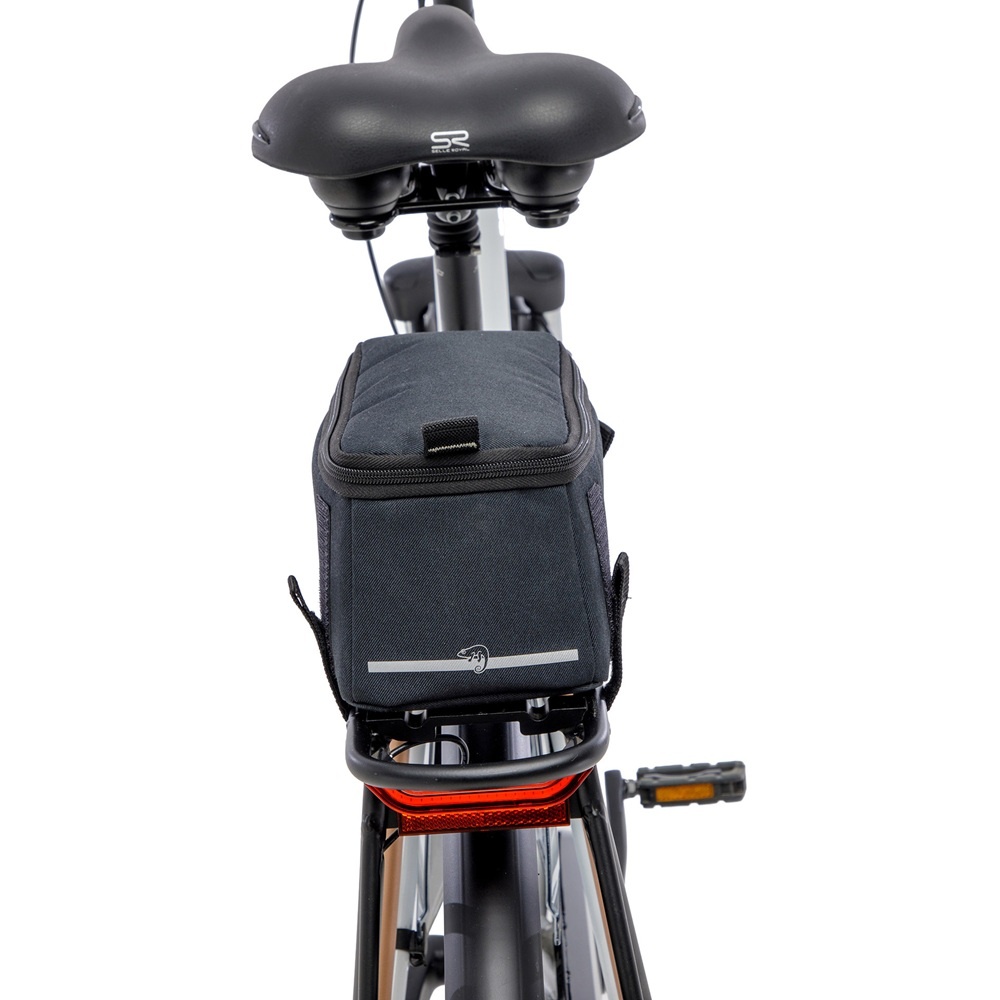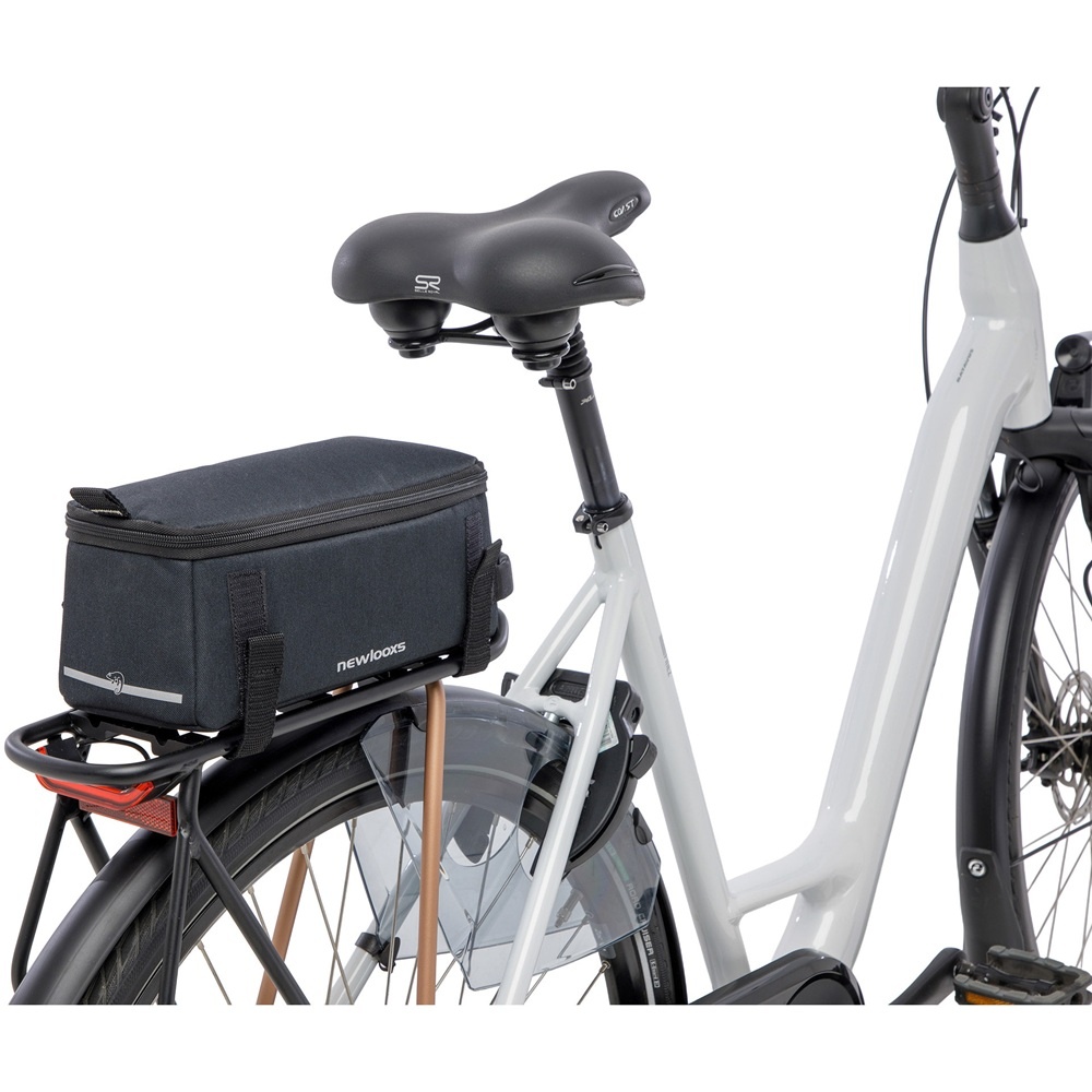 De New Looxs Trunkbag Lock is onderdeel van de New Looxs Sports-serie. Deze serie bestaat uit praktische en sportieve tassen voor op de fiets. De compacte, smalle bagagedragertas is gemaakt van waterafstotend polyester en uitgevoerd in het zwart. De trunkbag heeft een inhoud van ca. 4,5 liter en is zeer geschikt voor het op de fiets vervoeren van een kettingslot of een e-bike oplader.