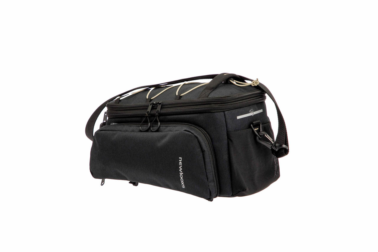 Uit de New Looxs Sports-serie: deze praktische en sportieve tas voor achterop de fiets. Deze bagagedragertas is uitgevoerd in het zwart en heeft enkele lichtgrijze details. De trunkbag is gemaakt van waterafstotend polyester en voorzien van meerdere reflecterende onderdelen en een Snapit 2.0-adapter.