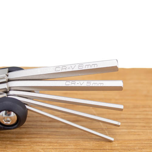 Hij weegt maar een beetje en past perfect in je handpalm. Daarmee heb je echter wel meteen tien stuks basic gereedschap voorhanden. Stuk voor stuk onmisbare hulpmiddelen bij het aandraaien, bevestigen, verstellen of loshalen van diverse fietsonderdelen. Hetgeen altijd van pas komt op een moment waarop je als fietser en/of MTB’er verzucht: ‘Blij dat ik deze had!’.