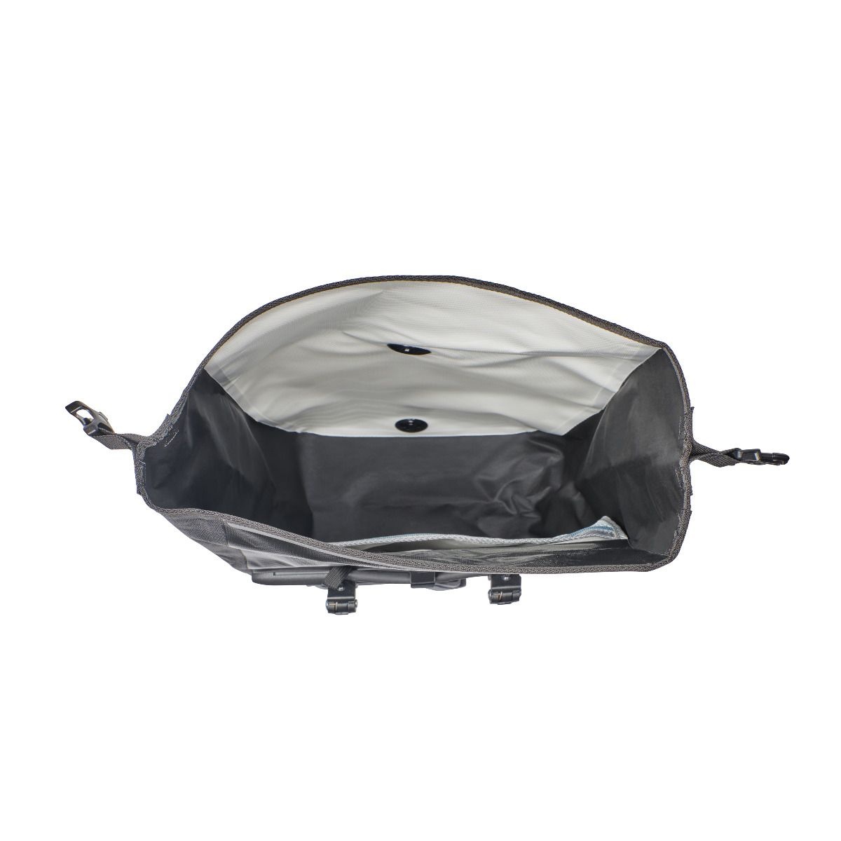De praktische Back-Roller Design heeft een ruim hoofdvak met daarin een groot steekvak en een ritsvak van mesh. De tas sluit met een waterbestendige rolsluiting met een klikgesp. Hoe minder bagage, hoe compacter u de tas dicht kunt rollen. Van de fiets af kunt u de tas dragen met de bijgeleverde, afneembare schouderband. Om de tas 100% stof- en waterdicht te maken (beschermingsgraad IP64), moet de rolsluiting 3 tot 4 keer worden opgerold. Op de zijkanten van de tas zitten sterke 3M-reflectoren, voor een goede zichtbaarheid in het donker.