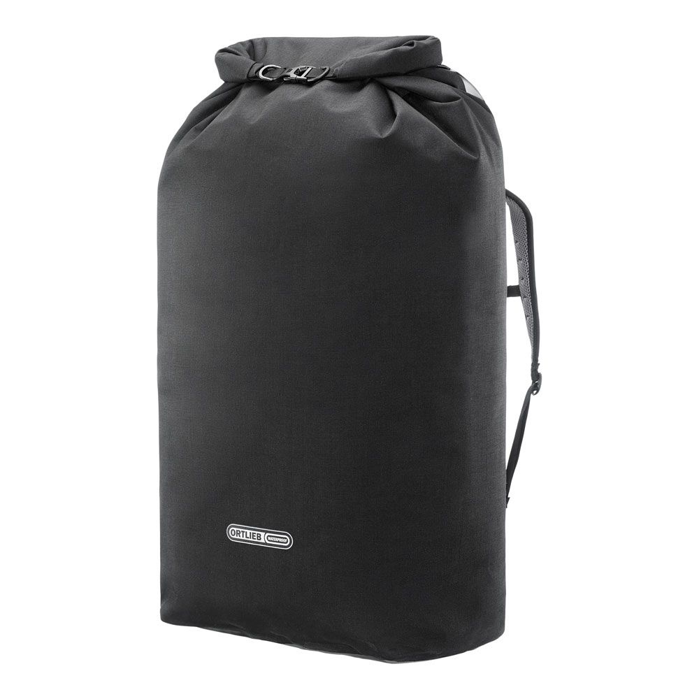 Deze robuuste, extra grote rugzak van het Duitse kwaliteitsmerk Ortlieb is licht van gewicht, maar oersterk en waterdicht. De zwarte tas is gemaakt van duurzaam PVC-gecoat polyester en voorzien van een rolsluiting en ergonomische schouderbanden. Het is een ideale rugzak voor outdoor activiteiten en avontuurlijke reizen. De tas kan ook worden gebruikt als beschermhoes voor bagage, bijvoorbeeld voor backpacks tijdens een vliegreis.