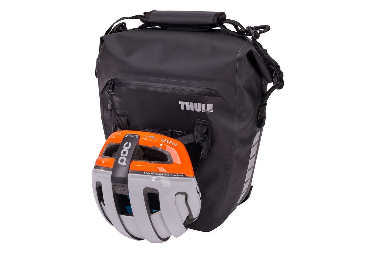 De fietstas van Thule heeft nog meer handige opbergmogelijkheden. Voorop de tas zit een waterproof ritsvak met daarin een sleutelclip. Zo hoeft u nooit naar uw sleutels te zoeken. Aan de lussen op de voorkant van de tas kunt u een fietshelm bevestigen. Daarnaast heeft de tas een schouderriem met comfortabele padding, voor wanneer u te voet verder gaat. Deze schouderriem wordt tijdens het fietsen aan het handvat bovenop de tas bevestigd, zodat deze niet tussen de spaken kan komen.