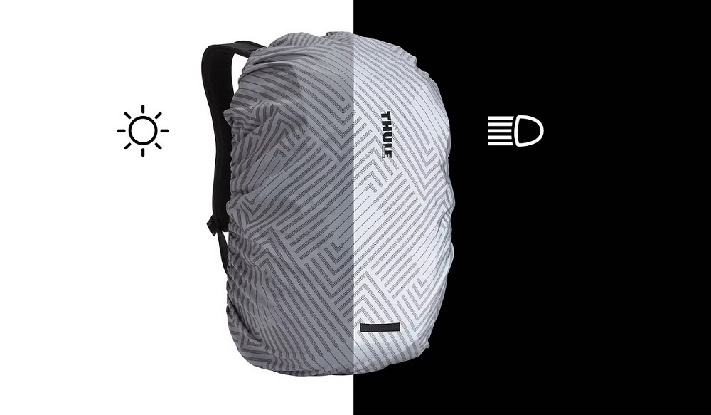 Deze Thule Backpack is een spatwaterdichte rugzak met gecoate, waterafstotende ritssluitingen. Mocht het hard of langdurig regenen, dan biedt de geïntegreerde, reflecterende regenhoes uitkomst. Deze vindt u in een ritsvak onderin de tas. U kunt dus met een gerust hart uw waardevolle spullen in de tas opbergen.