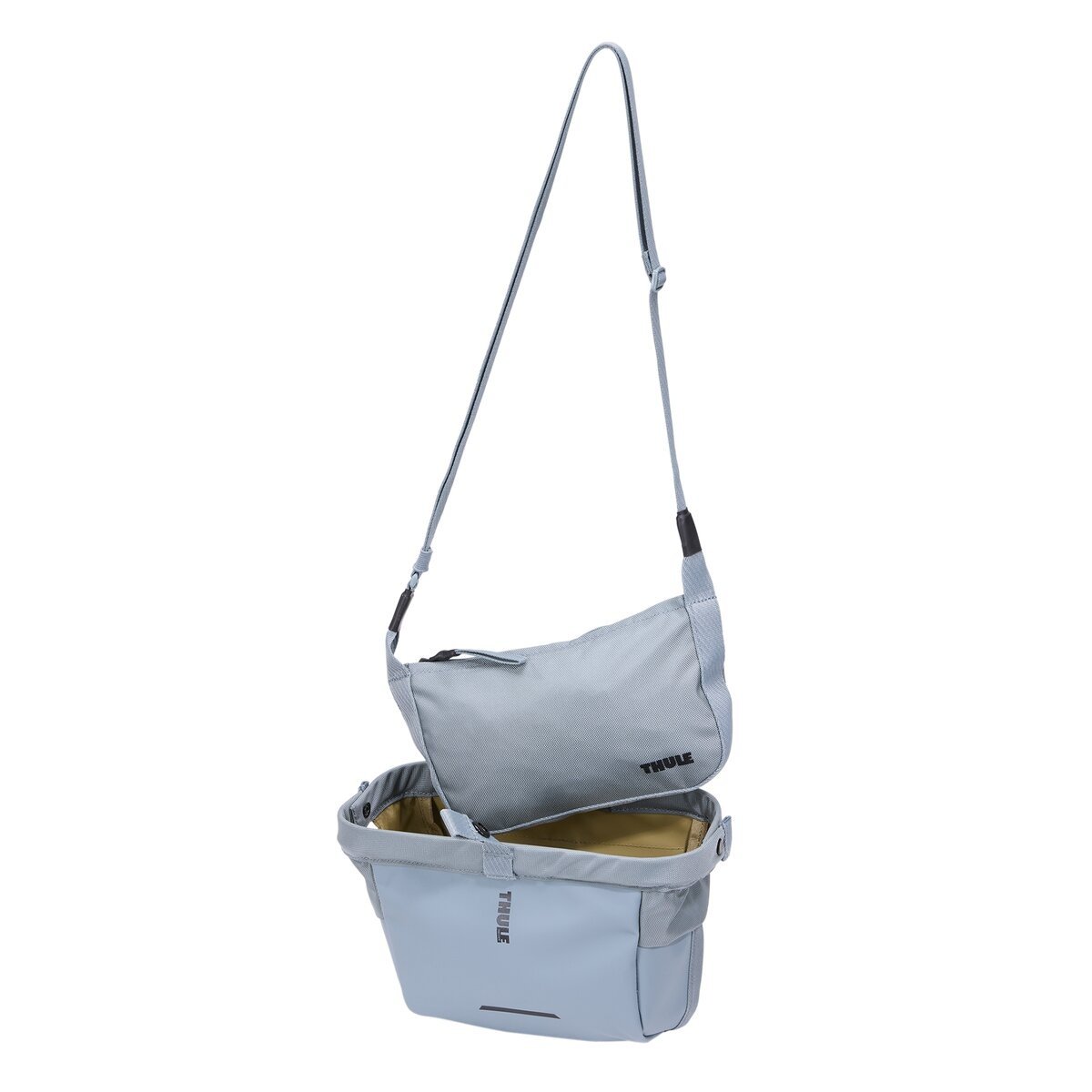 Met de Chasm Handlebar Bag van Thule heeft u kleine spullen binnen handbereik op de fiets! De stuurtas is compact, waterproof en heeft een inhoud van ca. 2 liter. De lichtblauwe stuurtas is uitgerust met een uitneembaar schoudertasje en wordt bevestigd met klittenband.